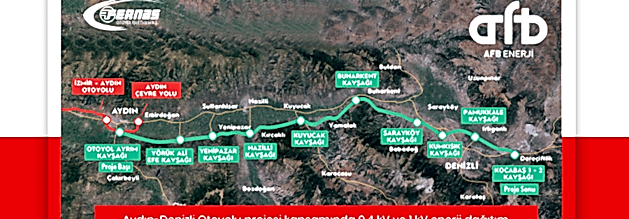 Aydın-Denizli Otoyolu projesi kapsamında 0,4 kV ve 1 kV enerji dağıtım sistemlerine ait tüm AG Panolar ve Refüj aydınlatma sac köşklerinin imalatı AFB ENERJİ tarafından yapılmaktadır.